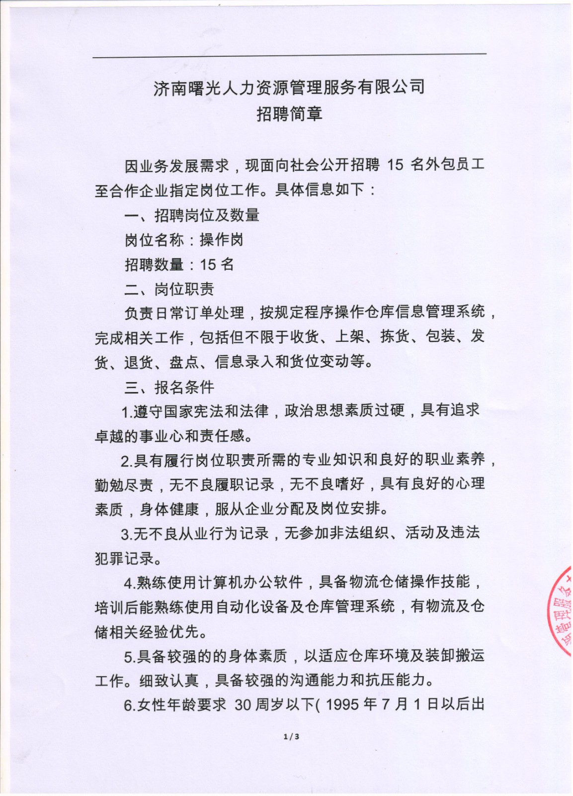 济南曙光人力资源管理服务有限公司招聘简章